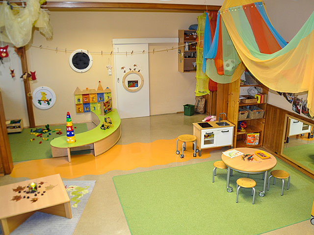 In kleinkindgerecht gestalteten Räumen und in einer Atmosphäre der Geborgenheit bieten wir in unserer mehrgruppigen Krippe den Kindern alles an, was ihnen Freude und Spaß bereitet und ihre Entwicklung unterstützt. Dabei richten wir unsere pädagogische Arbeit am Erfahrungs- und Entwicklungsstand der Kinder aus. Damit sich Ihr Kind von Anfang an bei uns wohlfühlt, legen wir großen Wert auf die Zusammenarbeit mit den Eltern, die mit einer individuellen Eingewöhnungsphase von zwei bis vier Wochen (Berliner Modell) beginnt. Die Eingewöhnung ist abgeschlossen, wenn das Kind die Bezugserzieherin als Vertrauensperson annimmt.