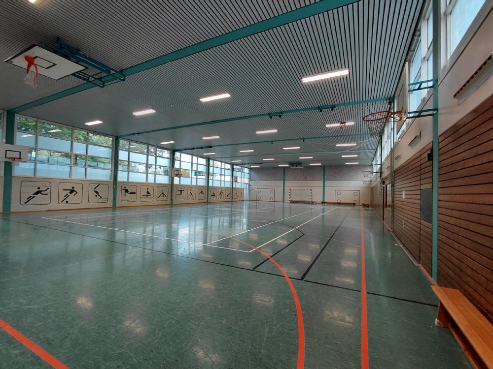 Das moderne Lichtsystem verfügt über eine Tageslicht- und Präsenzsteuerung, durch die sich das Licht in der Halle bei Tageslicht und nach ca. 15 Minuten ohne Bewegung selbstständig abschaltet. Zudem können zwei Helligkeitsstufen angewählt werden. Die Arbeiten zur Umrüstung des Beleuchtungssystems wurden während der Sommerferien ausgeführt, um eine störungsfreie Nutzung der Halle durch Schulen und Vereine zu gewährleisten. Die Schlussabnahme fand am 1. Oktober statt.