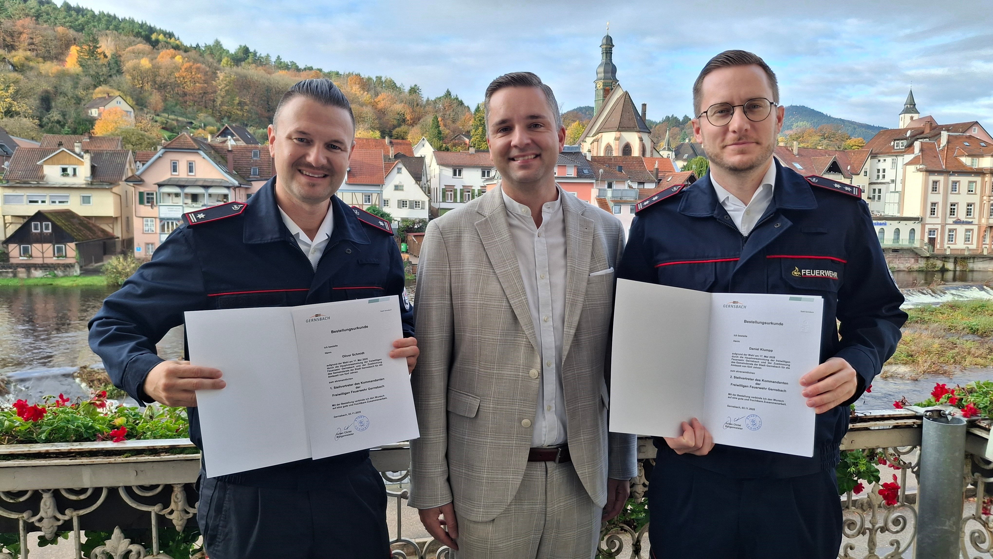 „Sie beide verfügen über die erforderliche Erfahrung und Expertise, um gemeinsam mit Kommandant Dennis Reiser die Führungsspitze der Feuerwehr Gernsbach zu bilden. Ich danke Ihnen im Namen der Stadt Gernsbach herzlich für die bisherige Arbeit, wünsche Ihnen alles Gute und freue mich auf weitere gute Zusammenarbeit“, betonte Bürgermeister Christ.