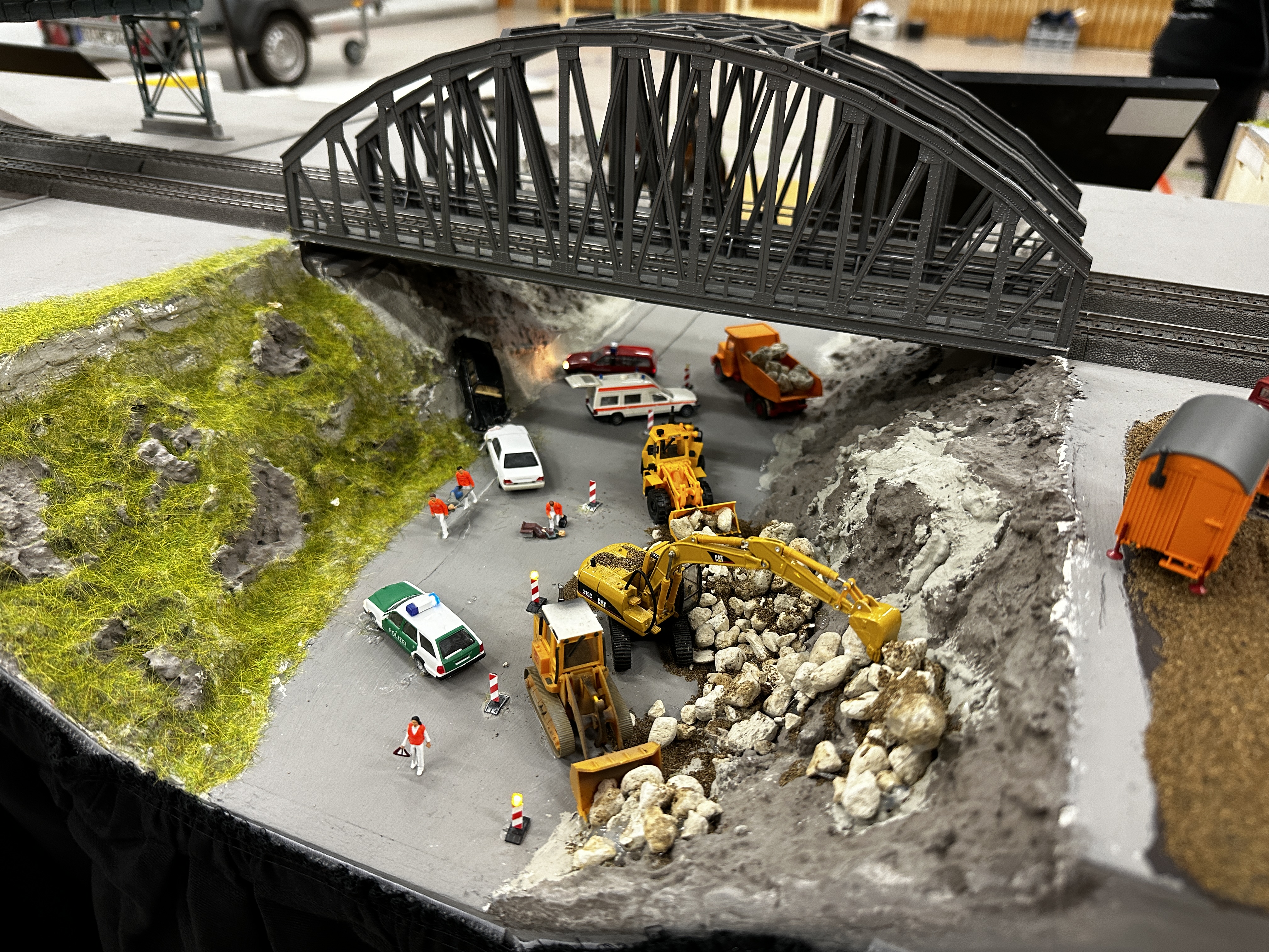 Die Modulanlage hat eine Gesamtlänge von 18 Metern und enthält eine umfassende Modelleisenbahnwelt. Dazu gehören unter anderem ein Betriebswerk, ein Modul mit fahrenden Autos und ein Bahnhofsmodul. Ein weiteres Modul zeigt eine Stadt mit Feuerwehr und Industriegebäuden, ein kleines stellt einen Bauernhof dar.