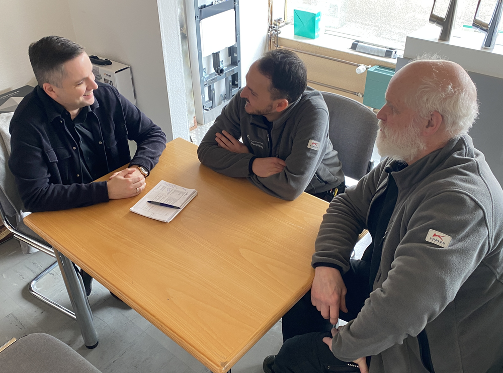 Der Familienbetrieb ist seit 2004 tätig und bietet Komplettlösungen für Bäder und Heizungen an, inklusive Service und Reparatur. Bei dem Gespräch mit Bürgermeister und mit der Wirtschaftsförderin erläuterten Matthias und Ruben Vierling die derzeitigen Herausforderungen: Unklare gesetzliche Vorgaben im Bereich Heizungen und bürokratische Hürden stellen das Unternehmen vor Aufgaben, doch der Blick in die Zukunft bleibt positiv.