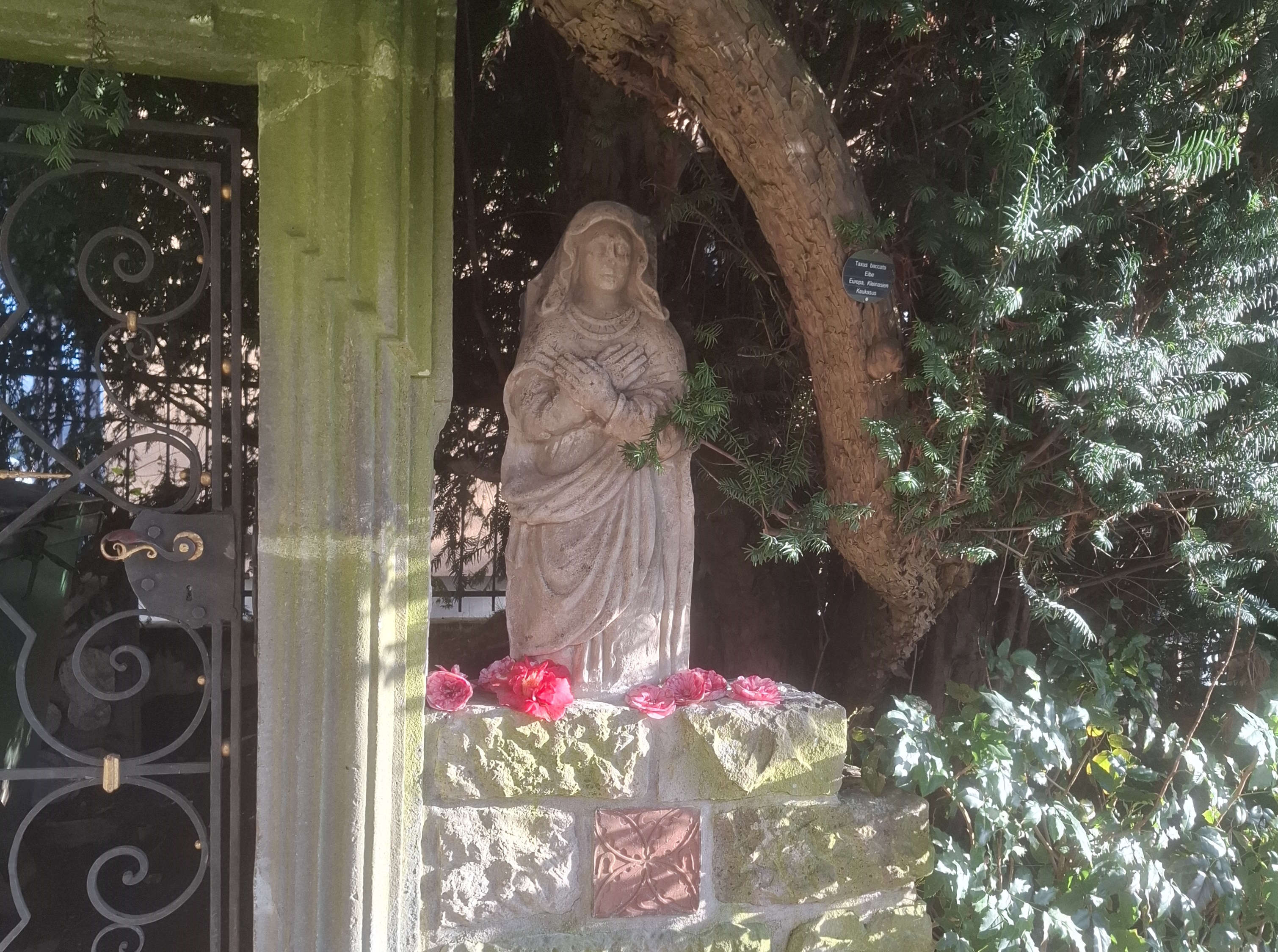 Der Arbeitskreis war über die Wintermonate wieder fleißig und hielt den kleinen Park auf Vordermann. Dank großzügiger Spenden konnte eine sehr alte Sandsteinskulptur, eine Ordensschwester, aus einem Kloster erworben werden. Diese schätzungsweise aus dem 16. Jahrhundert stammende Figur mit überkreuzten Armen war früher zum Totengedenken in einer Wand eingebaut. Die restaurierungsbedürftige Skulptur wurde von Restaurator Ulrich Böckmann aus Rastatt wiederhergestellt. Einen repräsentativen Platz erhielt sie im südlichen Gartenbereich auf der Mauer beim schmiedeeisernen Tor - ein Blickfang für Kunstliebhaber.