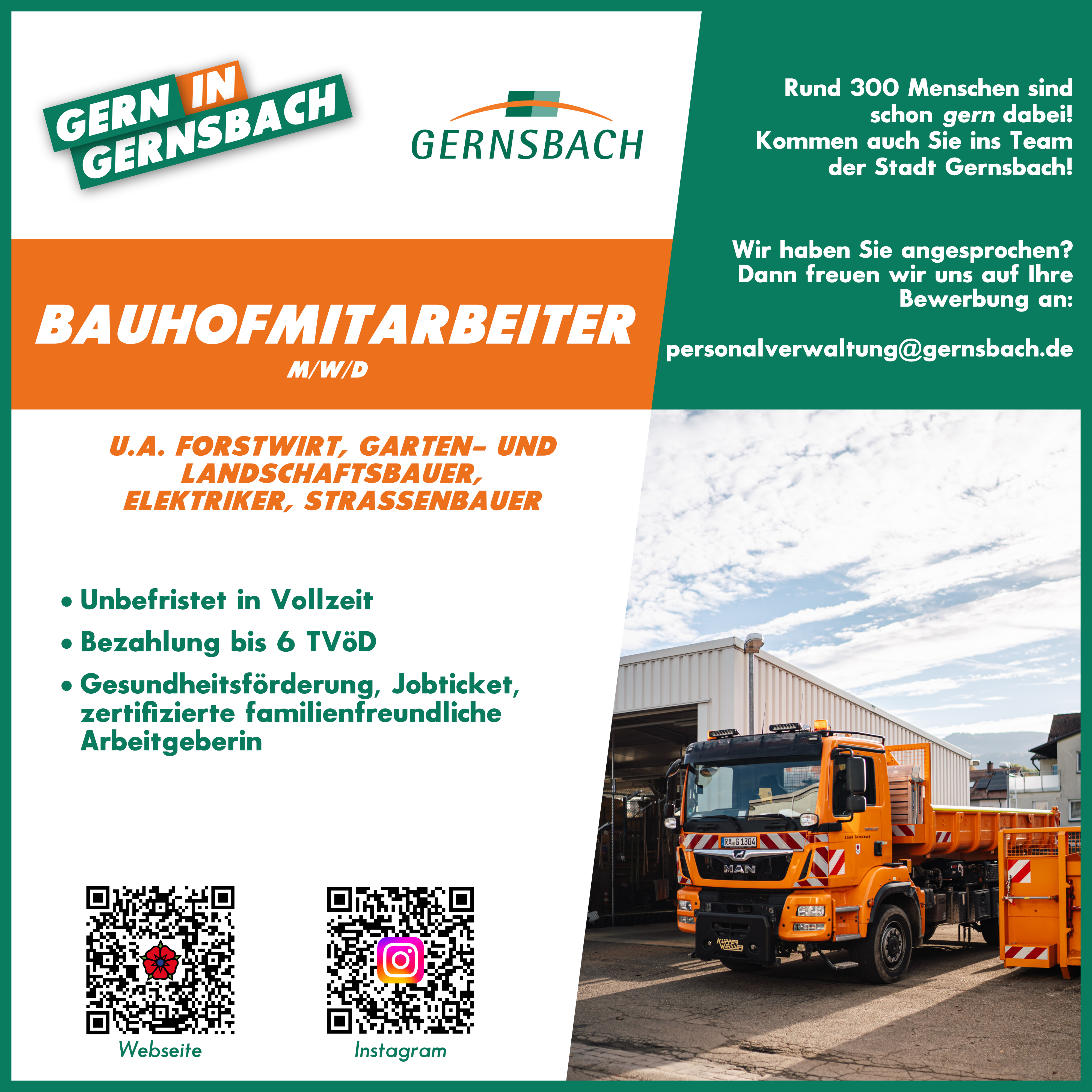 Rund 300 Menschen sind schon gern dabei! Komm auch Du ins Team der Stadt Gernsbach!