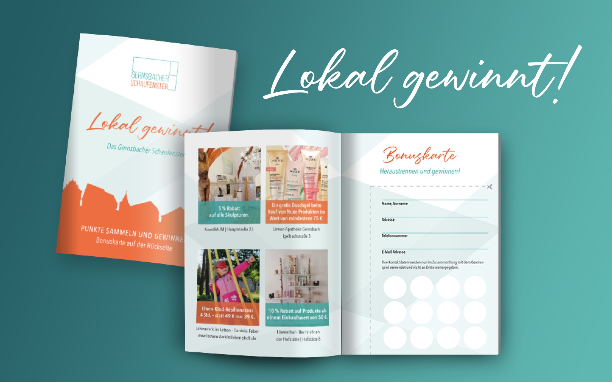 Das Bonusheft präsentiert ansprechende Aktionen der teilnehmenden Unternehmen und bietet zudem ein übersichtliches Verzeichnis aus den Bereichen Handel, Dienstleistung, Gastronomie und Gewerbe. Bei jedem Besuch eines teilnehmenden Betriebs können Bonusstempel gesammelt werden. Die persönliche Bonuskarte befindet sich auf der letzten Seite des Heftes.