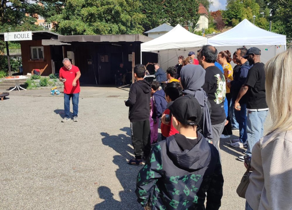 Gastgeber war der Verein Boulefreunde Gernsbach e.V., dessen Mitglieder sich ins Zeug legten jedem den richtigen Schwung beizubringen. Geduldig wurden die Regeln erklärt, die richtige Wurftechnik vorgeführt und die anschließenden Spiele begleitet. In warmherziger Atmosphäre fand dabei ein reger Austausch statt, bei dem sich die Gruppen immer wieder neu mischten. Bei einigen Gastspielern entwickelte sich schon bald der Ehrgeiz und so schloss sich ein Spiel ans nächste an. Neben den etwa 20 erwachsenen Gastspielern wurden auch die älteren Kinder ins Boule einbezogen, was diese mit großem Eifer beantworteten.