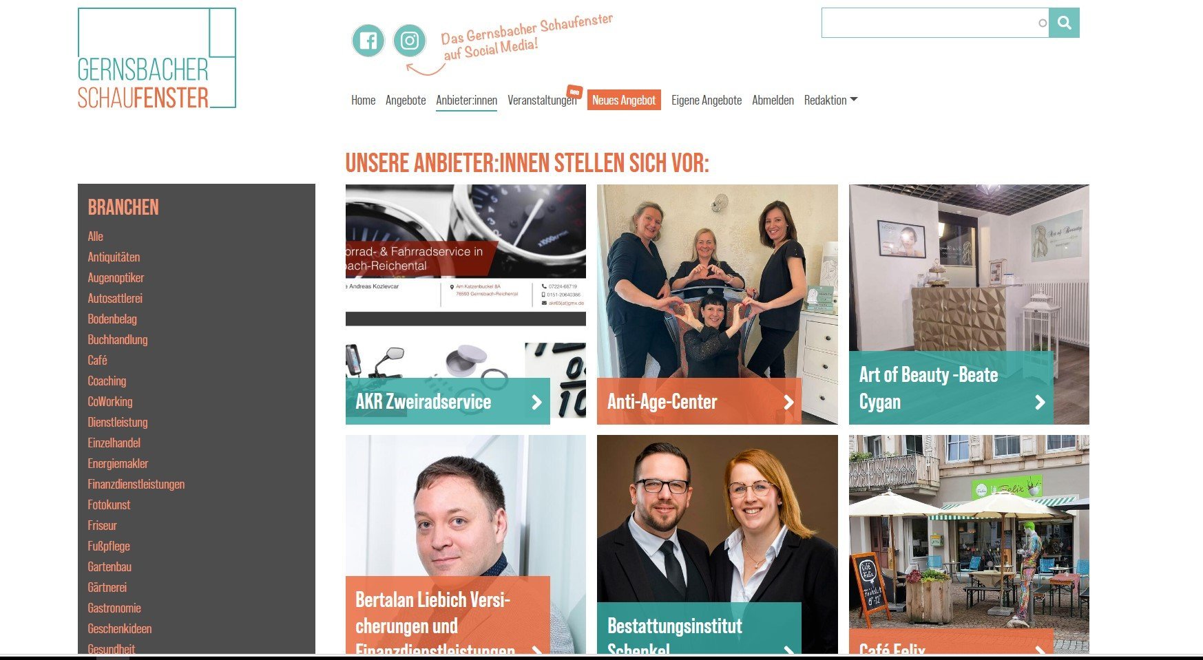 Die Plattform bündelt die Angebote lokaler Händlerinnen und Händler, Gastronominnen und Gastronomen sowie Dienstleisterinnen und Dienstleister und ermöglicht es, von Zuhause oder unterwegs durch Gernsbachs Vielfalt zu stöbern. Kundinnen und Kunden finden hier nicht nur Produkte und Dienstleistungen, sondern auch Informationen zu Öffnungszeiten, Abhol- oder Liefermöglichkeiten.