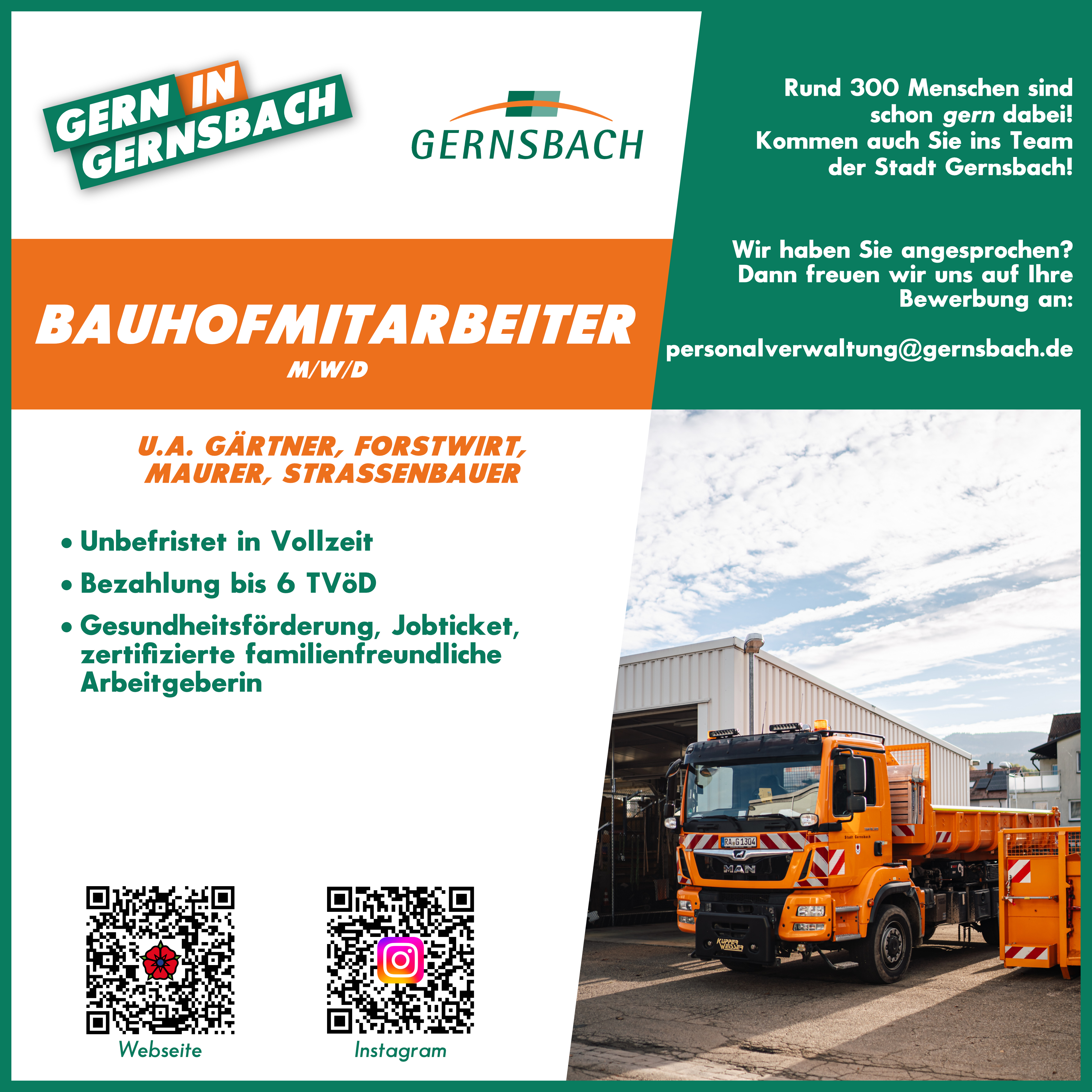 Arbeiten bei der Stadt Gernsbach – gern in Gernsbach, gern für das Gemeinwohl!