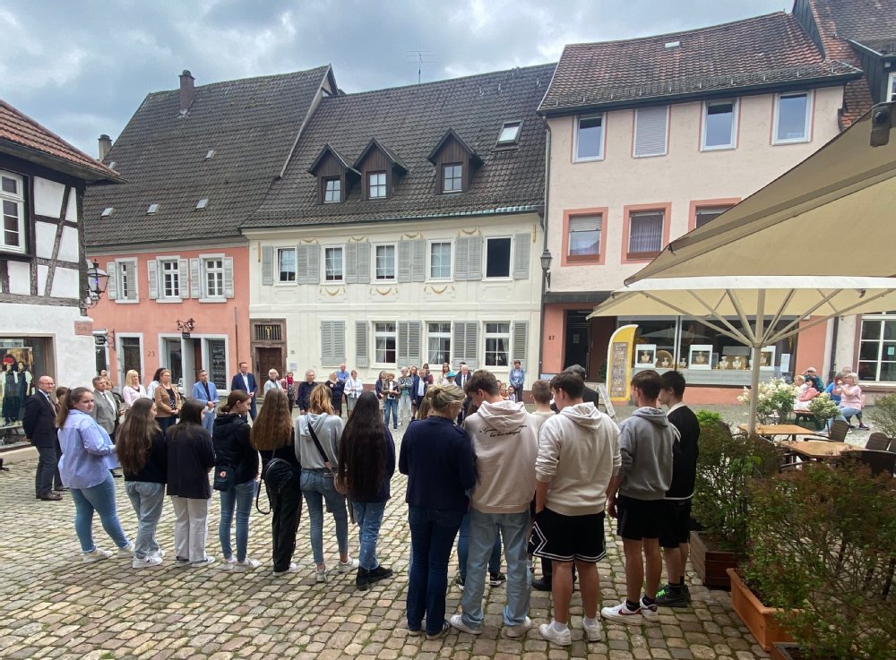 Die Gedenkfeier am Kornhaus anlässlich der Stolpersteinverlegung wurde musikalisch untermalt von Gerold Stefan, Musikschule Murgtal. Die Schülerinnen und Schüler der Klasse 9b der Realschule, begleitet durch ihre Lehrerinnen Elvira Schulz und Johanna Wilhelm-Lang, haben die Schicksale von August Fieg, Eva Stern, Hedwig Stern und Moritz Stern nachgezeichnet.